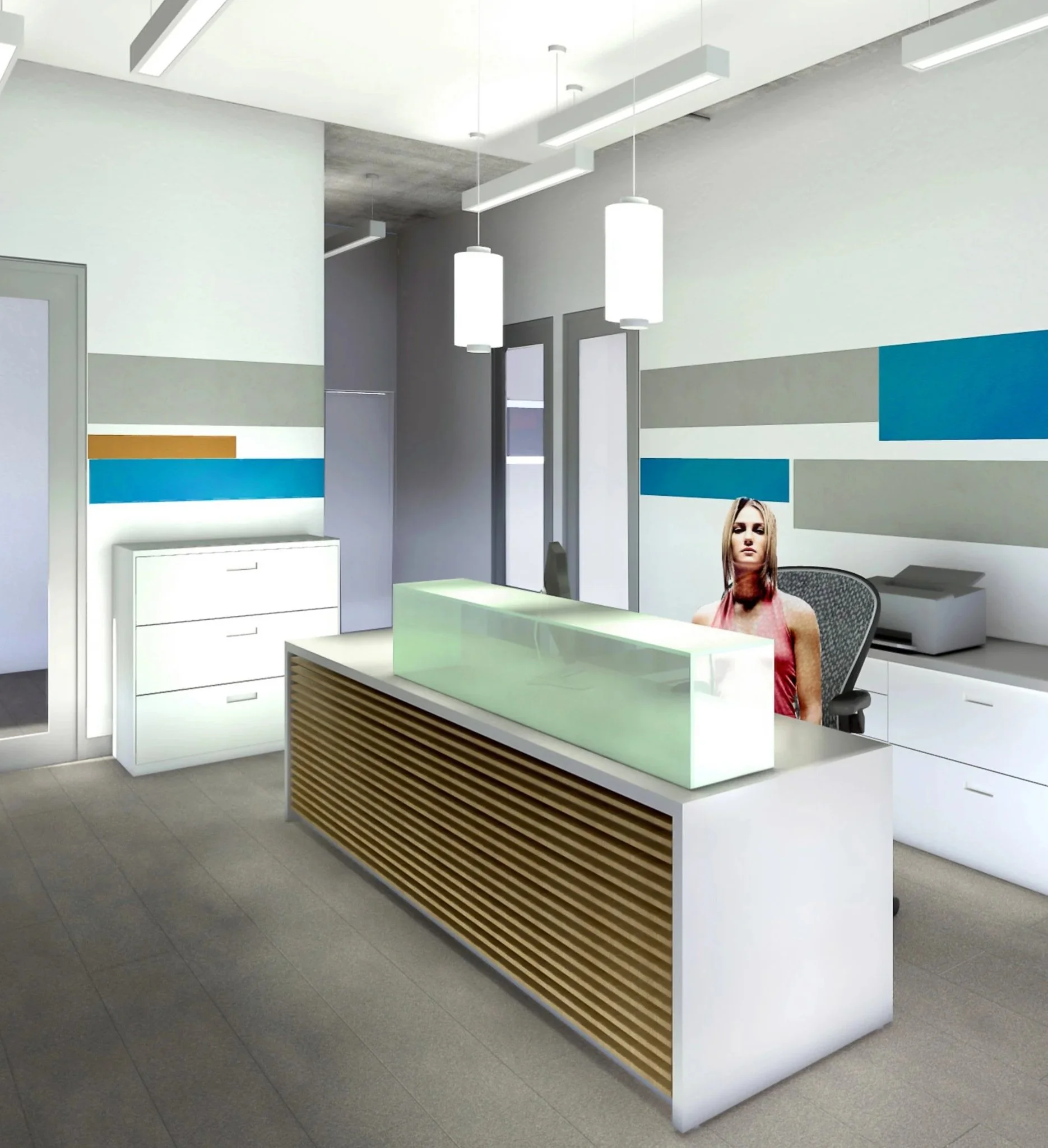 The project is a three-story building, with a ground floor warehouse, corporate offices on the second floor, and for-lease offices on the third floor.